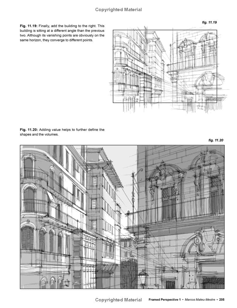 Framed Perspective 2 complementa la primera parte de este libro, Framed Perspective 1, guiando a los artistas a través de las desafiantes tareas de proyectar sombras en perspectiva adecuada. Una vez más el autor y artista Marcos Mateu-Mestre revela las muchas técnicas y mecánicas que ha utilizado para llegar a dominar tales esfuerzos, incluyendo el uso de la anatomía, las sombras y los tediosos pliegues de la ropa para definir la forma y el volumen de los personajes dentro de un entorno. Este libro de 132 páginas está lleno de ejemplos ilustrados, instrucciones paso a paso y explicaciones. El libro está lleno de conocimiento técnico y buen ojo.