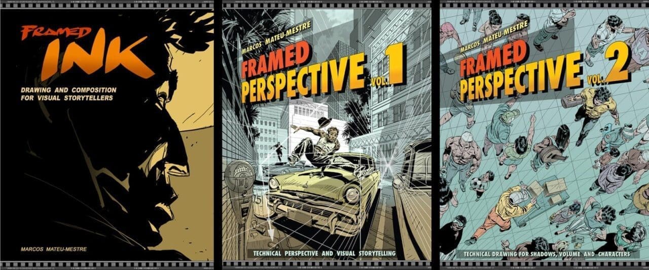 Personalmente, toda la saga de libros sobre dibujo y storyboarding Framed de Marcos Mateau-Mestre, creo que deberían ser patrimonio de la humanidad. Imprescindible para la comprensión de los fundamentos del arte visual y no solo para quienes están aprendiendo a dibujar. Para aquellos que, como yo, se pasan la vida dandose cabezazos con la perspectiva y el volumen en los personajes, este libro se convertirá en una de las mejores herramientas que pueda tener en su estantería.